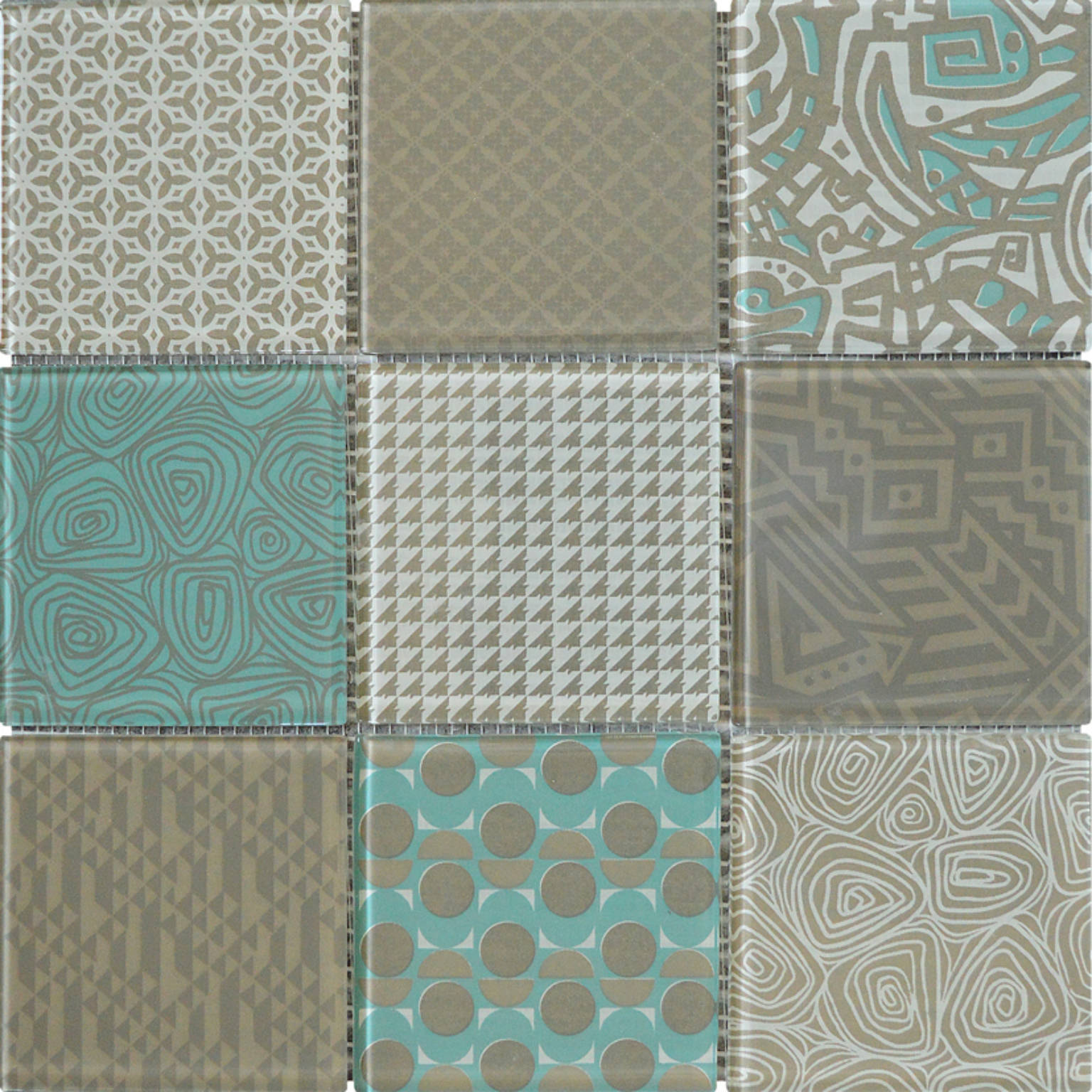 4″X4″ Beige Green Glass Geometric Random Pattern Mosaic