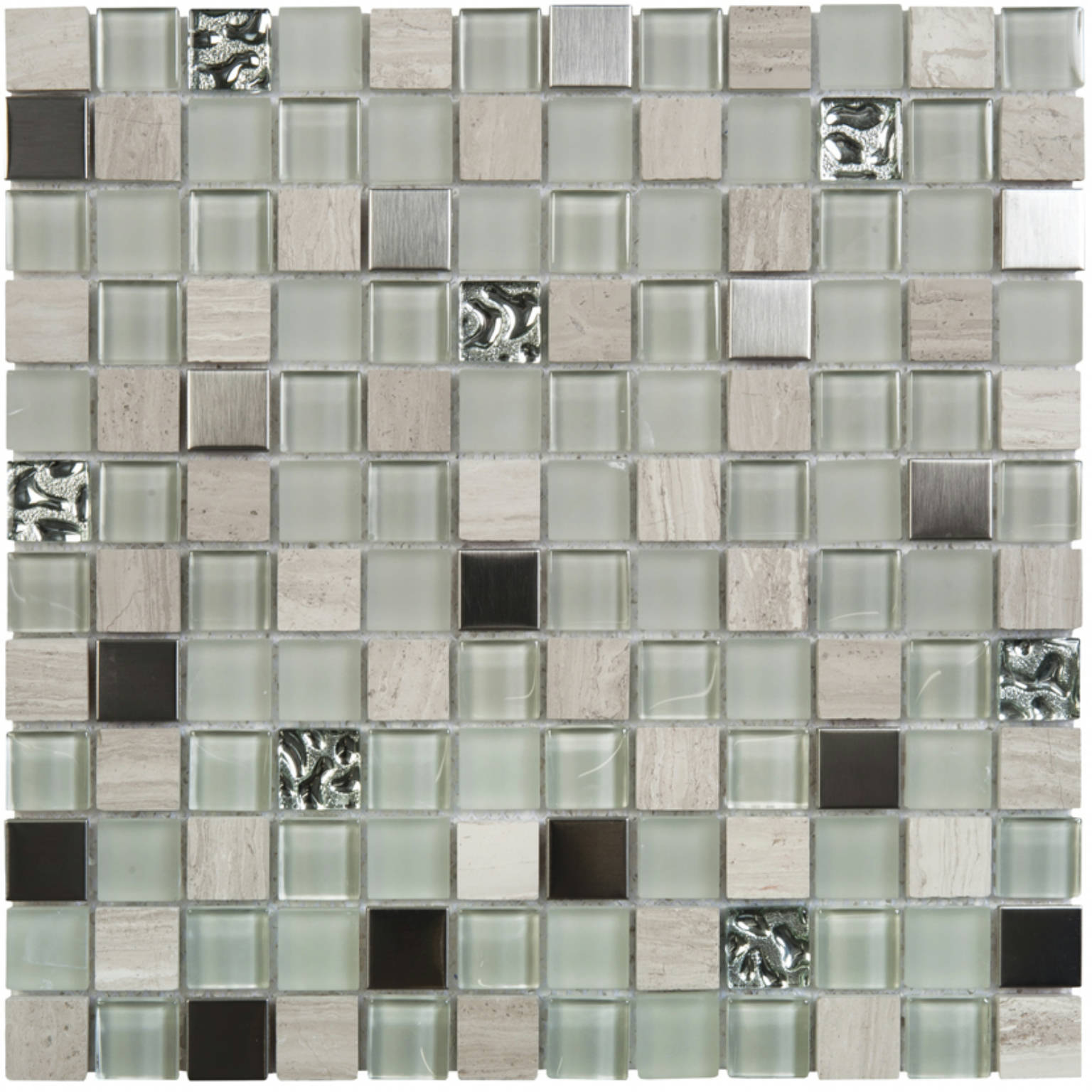 Grey Mix Marble Glass Metal 7/8″X7/8″ Mosaic