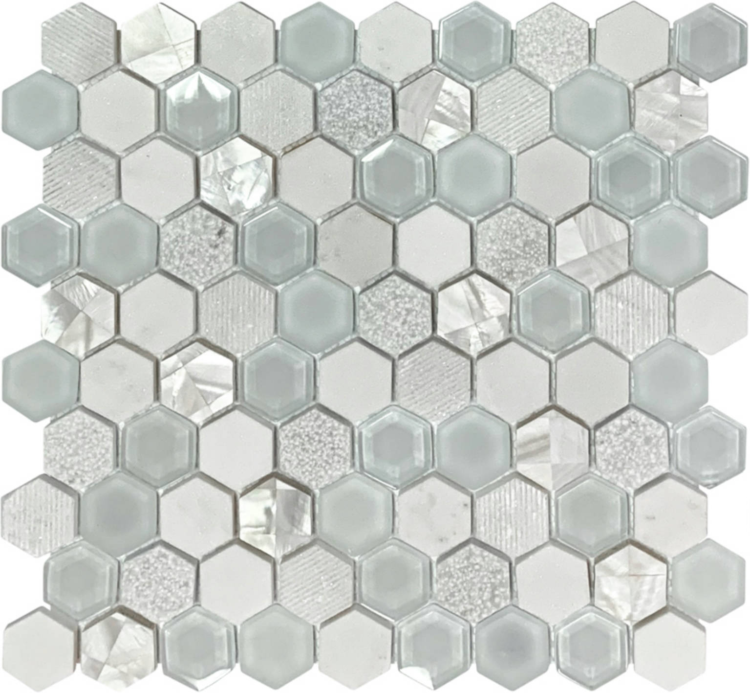 Hexagon Glass Marble & Mother Pearl White Mix Mosaic